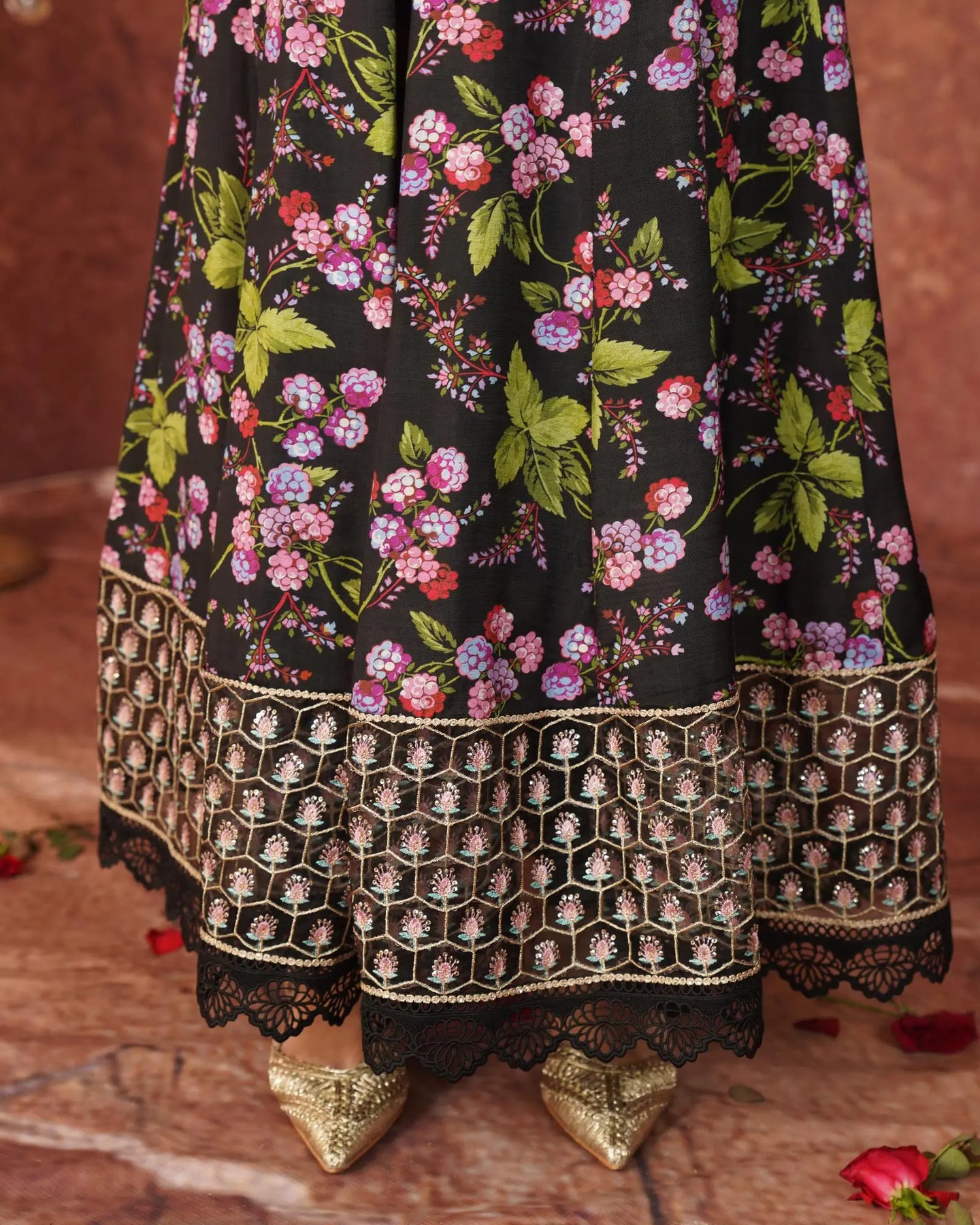 Maxi: Dull Raw Silk, Tilla Embroidered, Printed