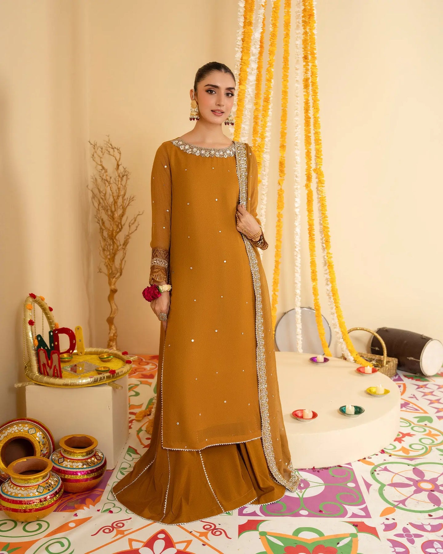 Includes: Shirt with sharara and dupatta